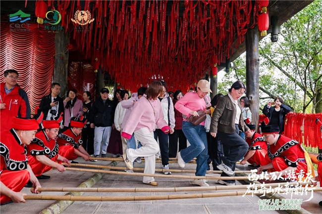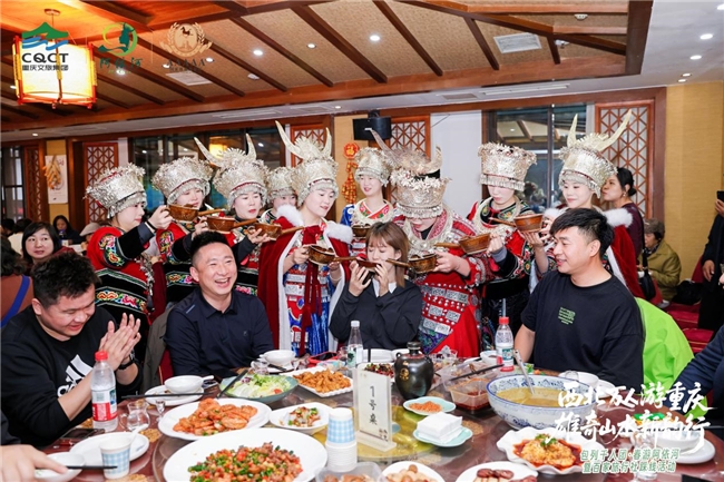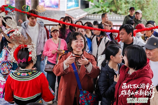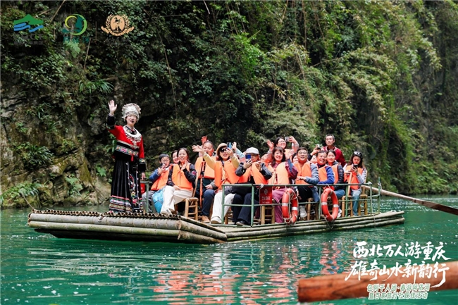 3月19日,满载着千余名来自陕西、甘肃、宁夏三地游客的专属旅游包列,分别从西安、兰州、银川启程,开启为期4天的渝东南山水民俗深度体验之旅。3月21日,千人旅游团先后走进彭水阿依河、乌江画廊两大核心景区,沉浸式邂逅苗乡独特风情,零距离饱览乌江百里胜景。在阿依河景区,庄重热烈的苗家迎宾仪式、醇香浓郁的拦门酒、欢快灵动的竹竿舞、悠扬婉转的竹筏放歌、热闹非凡的娇阿依篝火晚会等特色体验轮番上演,让游客沉浸式感受苗族文化的独特魅力;在乌江画廊景区,游客乘舟泛游、临江揽胜,真切体悟“船在水中行,人在画中游”的诗意意境。全程依托沉浸式、场景化、体验式文旅业态,生动诠释“雄奇山水 新韵重庆”文旅品牌核心内涵,让远道而来的西北游客深度领略巴渝山水的雄奇秀美与民族文化的厚重韵味。